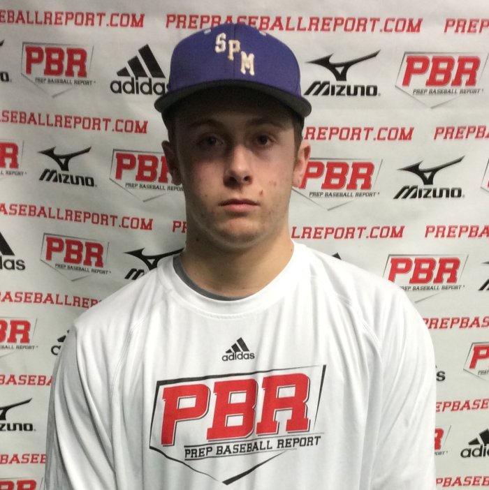 6-foot, 190-pound, strong, solid thick athletic frame. The lower half is very strong, powerful, a well proportioned athlete. A right-handed pitcher, delivery is sound, compact, works with minimal effort. More of a hybrid start, hands start and stay higher, smooth athletic kick, stays strong, tall over the backside and rubber. The direction is slightly across his body, giving deception towards right-handed hitters. The arm action is clean, average length, working from a high 3/4 slot, its powerful with good hand speed. The fastball reached 87 mph multiple times, its heavy with down action to it. The breaking ball, was clocked at 71-72 mph, showing tilt and proper shape to it. The changeup has late action to it, comes out looking like a fastball, clocked at 76 mph, chance to be a legit out pitch at the next level. Pitches the baseball with entire body, look for him to pitch right away at the next level.