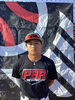 5-foot-7, 135-pound right-handed hitting outfielder and right-handed pitcher. He ran a 7.63 sixty at the event. The approach in the outfield is online and athletic, as he threw 64 mph from right field to the plate during the outfield portion of the workout. The bat has an exit velocity of 85 mph. The setup is even in base and the front foot gains minimal ground as the ball approaches the hitting zone. The path is slightly uphill through contact with the baseball. The hands work free and clean with the bat. On the mound, the fastball sat 72-73 mph. The spin pitch is still developing and he showed a changeup at 65-66 mph. The delivery is online with the feet and the slot is above 3/4 in height. The lift is solid in tempo, the glove has pull across the hitters face and the top half direction can improve as he comes offline to soon.