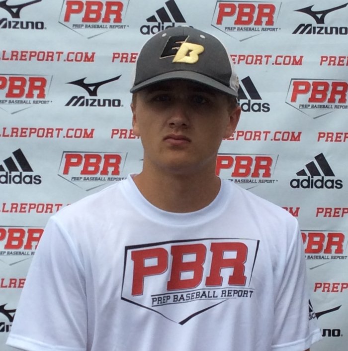 5-foot-11, 180-pound left-handed hitting outfielder. He had a solid performance at the event. The approach in outfield is athletic and online, he is skilled enough to play all 3 spots. He showed the knack for getting off the ball very well in game. He threw 79 mph during the outfield portion of the defensive workout. He ran a 7.1 sixty at the event. The bat has an exit velocity of 86 mph. The setup is wide in base and he gains minimal ground to the ball as it approaches the hitting zone. The hands work well and the path is flat through contact with the baseball. He can also kick to the infield if need be.