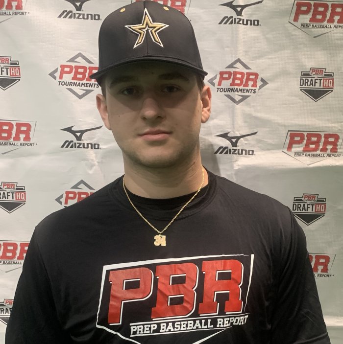 6-foot, 205-pound right-handed hitting first baseman. Had a good week at the plate with Team Mass. Ran a 8.8 sixty at the event, as the foot speed will improve as he matures. The glove is solid around the bag, and the feet work appropriately. He is reliable at first. Threw 67 mph across the diamond. The bat has a tee exit velocity of 79 mph. The setup is even in base, front foot open to start. The front foot closes down and gains ground to the ball as the swing is produced. The path is long and he uses a 1-handed finish after contact.