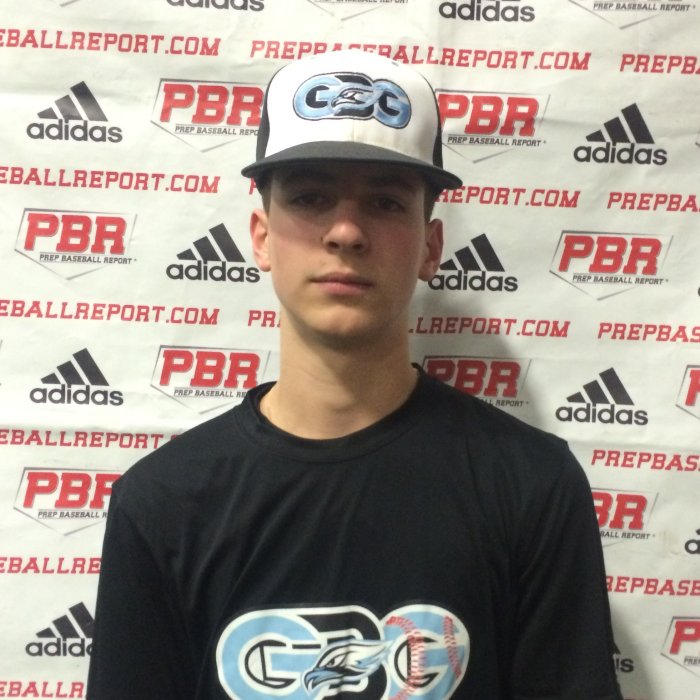 5-foot-11, 150-pound catcher and corner infielder. Ran a 7.5 sixty on the laser at the event. The approach in the infield is aggressive and the hands work freely. Threw 74 mph across the diamond. The bat has a tee exit velocity of 77 mph, physical strength gains are needed to aid the development of the bat. The setup is even, front foot open to start. The front foot closes down as the ball approaches. The bat has a small amount of wrap to start, the path is a tick long to contact. The hands work well and he shows the ability to get the barrel out front.