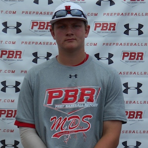 Right-handed hitting catcher. Pop time of 2.14 as he feet and transfer need to improve. His receiving has gotten better since the winter. Arm strength was 74 from behind the dish. The bat has life to it out of a high hands approach. The bat is flat at contact and he finishes through the ball well. Tee exit velocity of 89, so as you can tell he handles the bat well. Ran a 4.88 down the line. Handled the pitchers very well in game and shows passion for the position.