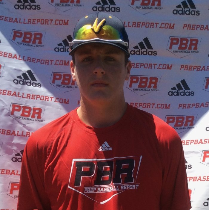 6-foot-1, 195-pound right-handed hitting corner infielder. Very good skill set with more to come with the frame. His ability impressed me. Threw 82 mph across the diamond with carry and accuracy. The feet work well and the glove is solid, showed good athleticsm at the hot corner. Ran a 4.8 down the line on his dig to first base, improving that is a must. The bat has very good life to it, tee exit velocity of 87 mph. Starts with his feet wide in base, uses a small pick up and put down of the front foot as the ball approaches. The hands are strong and he shows power potential at the dish. This guy is a player, and the frame has room to improve and fill out physically