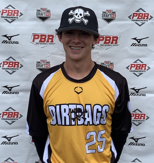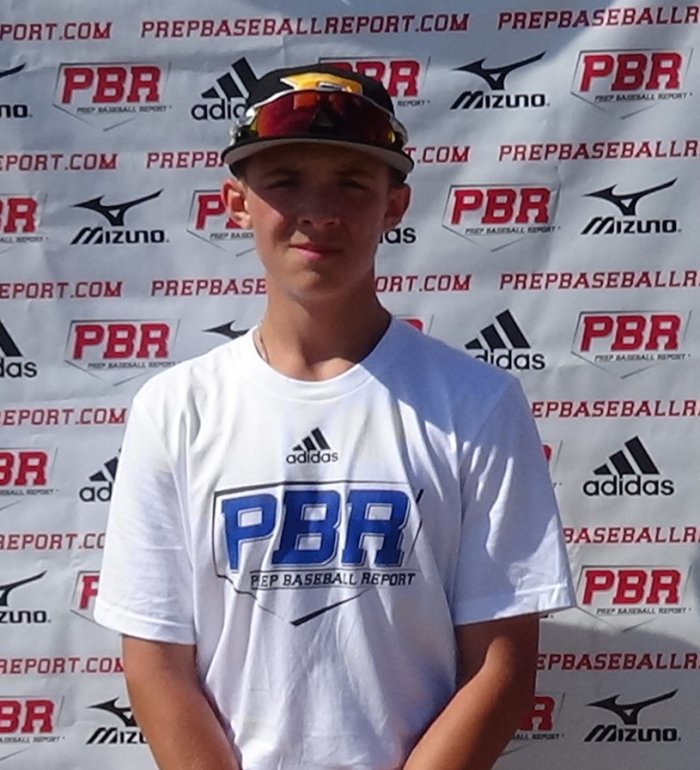 Advanced approach at the plate. Hits form a tall, balanced, athletic stance at the plate. Smooth front leg lift into load for rhythm and timing. Uncoils body and lets the hands fly attacking the baseball with intent. Creates some barrel whip and gets the bat head on plane early with a more uphill swing path. Nice lower half involvement and long finish. Recorded an exit velocity of 73 mph and ran a 4.89 home-to-first time. Controlled approach to the ball in the outfield working through it with quick footwork and clean actions. Throws with long arm action from a high three-quarters slot at 77 mph. Controlled side-step wind-up and medium leg kick into a tall, compact balance point. Clean hand separation with slight uphill shoulder tilt and a smooth delivery. Creates some arm speed through release and lands closed to the plate with a slightly upright finish. Threw with some longer arm action from a high three-quarters arm slot with easy effort. Fastball sat 68-70 mph and touched 71 mph. Breaking ball had 11/5 shape at 53-57 mph and change-up ranged 60-62 mph with slight drop.