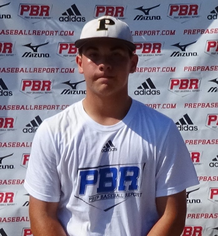Strong, solid body type and 5’10’’, 180 pound frame. Hits from a balanced, slightly open stance at the plate. Rhythmic load, short stride, and slight hands separation. Incorporates some lower half into swing. Showed a short, level swing path, quick hands, and quick bat speed. Excellent balance, good extension, and a strong finish. Gap-to-gap line drive type hitter with some pop. More power easily projected as he continues to utilize lower half in swing more. Recorded a 77 mph exit velocity. Showed quick footwork behind the plate and gains ground on throws to second base. Squares shoulders well and throws with short arm action over the top at 70 mph. Exchanges were quick and clean, throws were accurate, and pop times ranged 2.01 - 2.08. Ran a 7.58 60-yard time.