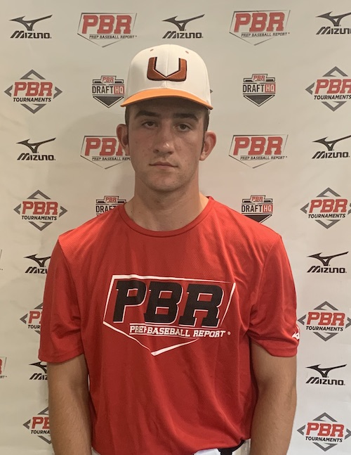 Hit: RHH. Wide, bent stance with full body lean back to a deep load position. Worked positive hip rotation into the front side flashing weight shift through a flat path at impact. Good extension and feel for the pull-side, doing damage on pitches out over the plate with extra leverage in the swing. High intent yielding a 50% ground ball rate during his round of batting practice.