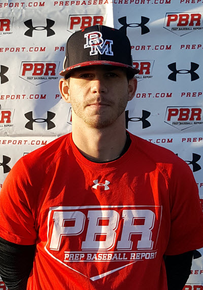 10.23.16 - Athletic frame at 5-foot-9, 155-pounds. Ran a 4.55 home-to-1st. Exit velocity of 87mph. Hits from a balanced, square set up. Smooth load with good rhythm. Level bat path to the ball with good extension through contact. Shows some bat speed. Sound hands and feet in the field. Quick, compact arm action throwing from a ¾ arm slot. Throws across the diamond at 74mph. Active feet and works through the ball in the outfield. Clean exchange throwing from a high ¾ arm slot with throws up to 80mph from the outfield.