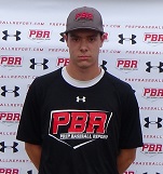 6.30.15 - Lanky and athletic frame at 6-foot-2 205-pounds. Has a short arm action from a low ¾ arm angle. Makes consistent throws with carry on them from the turn at first base and got up to 67 mph. Hits from a slighty open set up with a short and quick stride. Level swing path and some bat speed. Pull side power. Gap-to-gap approach. Good balance and rhythm in swing. 4.78 home to first time and an exit velocity of 87 mph. Good athlete around the bag at first that also pitches. Throws from a high ¾ arm angle with some arm speed. Loose arm action and slight wrap. Pitches with easy effort. Smooth rhythm and stays in line with a square finish. Fastball was straight at 80-84 mph. Breaking ball 10/4 movement with good rotations and near fastball arm speed at 70-72 mph.
