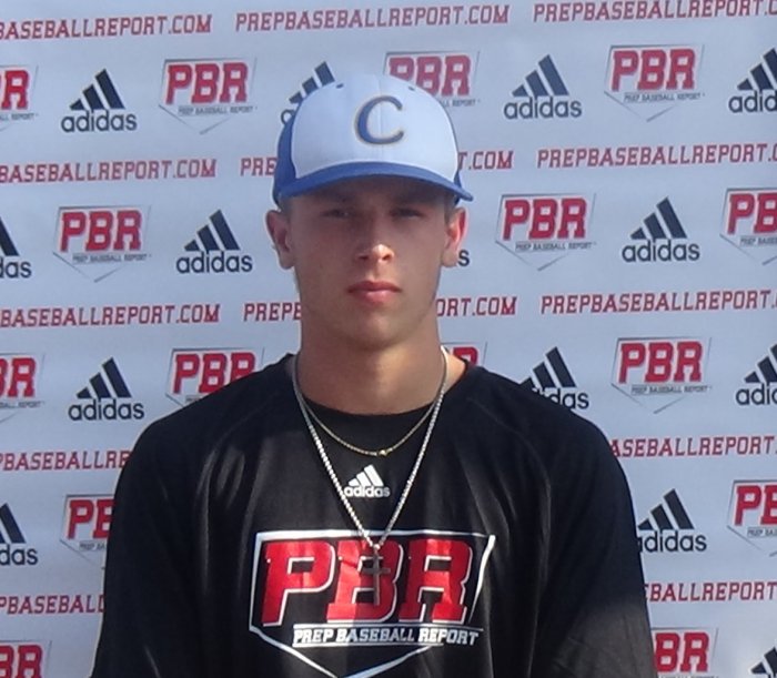 Athletic body type and 5-foot-11, 165 pound frame with room to fill out. Hits from an athletic, balanced, open stance. Smooth rock back load with a small leg kick for timing. Gets really good separation and some lower half involvement is evident in his swing. Good rhythm and some bat speed, stays behind the ball well. Short, uphill swing path, gap-to-gap type hitter. Showed the ability to hit the ball to all fields. Plays through the ball in the outfield with fluid footwork and a quick clean exchange. Consistently accurate on throws with long, loose arm action throwing from a high three-quarters slot at 81 mph. Ran a 4.09 home-to-first.