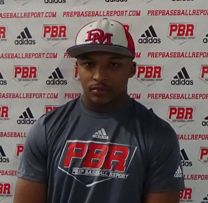 Strong, solid, athletic body type and projectable 5’11’’, 195 pound frame. Hits from a balanced, athletic, square stance at the plate with hand rhythm. Rock back load with a medium sized leg kick. Creates some hand separation and showed a slightly longer swing path with some uphill tilt. Quick hands and bat speed through the zone. Stays behind the ball well with some lower half involvement. Good extension through contact and finishes swing with one hand. Strength and power present. Recorded a 96 mph exit velocity and peppered the gaps during BP. Plays through the ball in the outfield with a controlled approach and quick, fundamental footwork. Throws with short arm action from a mid three-quarter slot at 78 mph. Throws were accurate to the plate. Ran a 6.76 60-yard time.