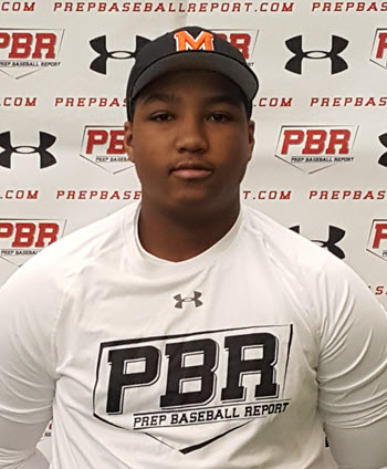 Big, strong, physically imposing body type and 6'2'', 225 pound frame. Hits from a balanced, slightly closed stance at the plate. Quick, medium sized leg kick with some hand separation. Short to the ball with a more level swing path. Showed quick hands and fast bat speed. Big time strength and power are present as the ball jumps off the bat with ease. Having a great year offensively for McDonogh and is throwing up big power numbers hitting in the middle of their order. Very intriguing prospect and one of the loudest bats in the 2020 class by far.