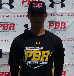 11.1.15 - Athletic frame at 6-foot, 155-pounds. Ran a 7.5 60-yard dash. Hits from an athletic, slightly open set up. High leg kick with load. Short swing path and middle type hitter. Nice rhythm in swing. Gets lower half involved. Exit velocity of 83 mph. Quick clean exchange and hands. Short arm action throwing from a low ¾ arm slot. Throws across the diamond at 82 mph.....Athletic frame at 6-foot, 155-pounds. Smooth rhythm in controlled delivery. Loose arm action with some arm speed. Lands in line to the plate with athletic finish and sometimes finishing to first base side. Fastball has late run to the pitch at 84 mph. Breaking ball has 12/6 shape with near fastball arm speed at 73 mph. Change has fade to the pitch with near fastball arm speed at 76 mph.