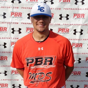 5-foot-11, 200-pound prospect. Over-the-top arm action with a closed landing slightly falling to the first base side. Fastball was 72-74, curveball 62-65 mph, and changeup at 63 mph. Setups well behind the plate with above average receiving skills and good blocking skills with pop times of 1.97-2.06. Ran a 7.25 60-yard dash and a 4.77 home to first. Athletic setup in the box keeping his hands inside the baseball well. Bat speed registered at 82 mph.