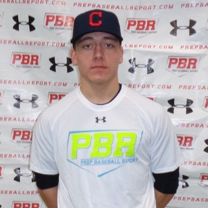 Physical, put-together left-handed hitting catcher has an impressive presence in the batter’s box. Bat stays in the zone a long time and flashed present bat speed. Defensively, prototypical catchers body and target. Strong arm, ball stays true from behind the plate. Good looking 2017 prospect is committed to Michigan State.