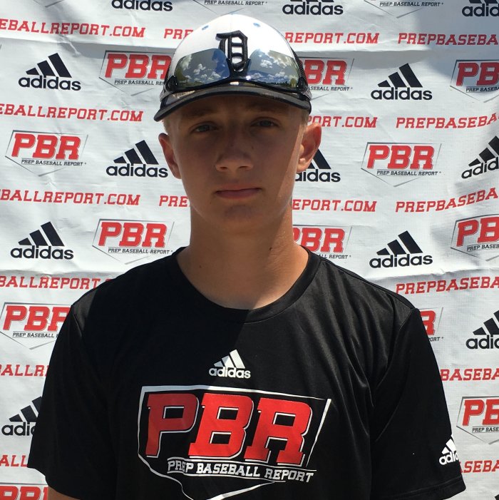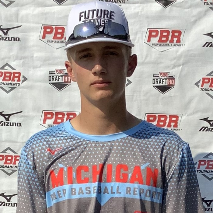 Carson Smith: OF/RHP, (2023) Grandville, MI. 6-foot-2, 195-pound. Projectable in the box, Smith clocked an exit velocity of 94 mph. Begins in a wide stance with a low load, then uses a short stride. Has an uphill swing plane and a back foot finish. Through the round he found multiple barrels with loud contact. Gap to gap approach. Smooth from the outfield, he showed plus arm strength by making throws to the infield at velocities up to 90 mph;had a clean lengthy exchange, smooth footwork, and consistent hands. Laterally, movements were athletic and fielded the ball out front. Used a long arm action with a high ¾ slot while showing decent accuracy to the base. Showed off his speed at the event, running a swift 6.79 60-yard dash.