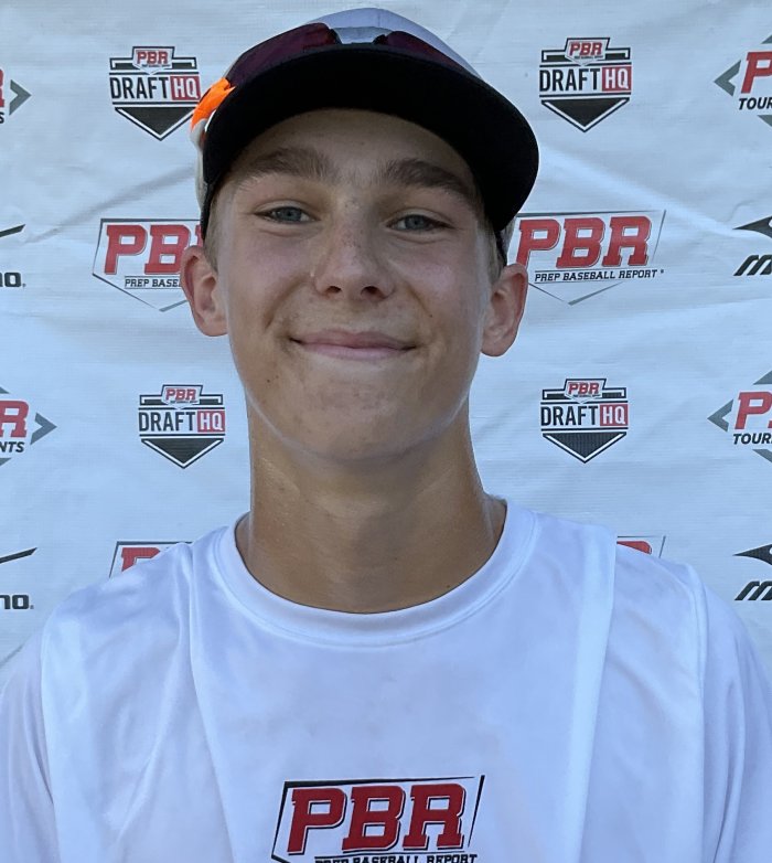 Two way player with a tall lean frame. Good feel in the box staring in an upright stance showing ability to work all fields. Defensively has good actions projecting at the corners where his arm plays. Threw 89 MPH across infield. Big upside on the mound as well showing multiple arm slots. Sits 86-88 with the fastball throwing it out of over the high 3/4 and side arm slot. Breaking ball is two planed at 72-74. Works with a tighter breaking curve out of 3/4 slot and a sweeping slider out of the low slot. Huge week as a two way and projects well as a hiter and pitcher.