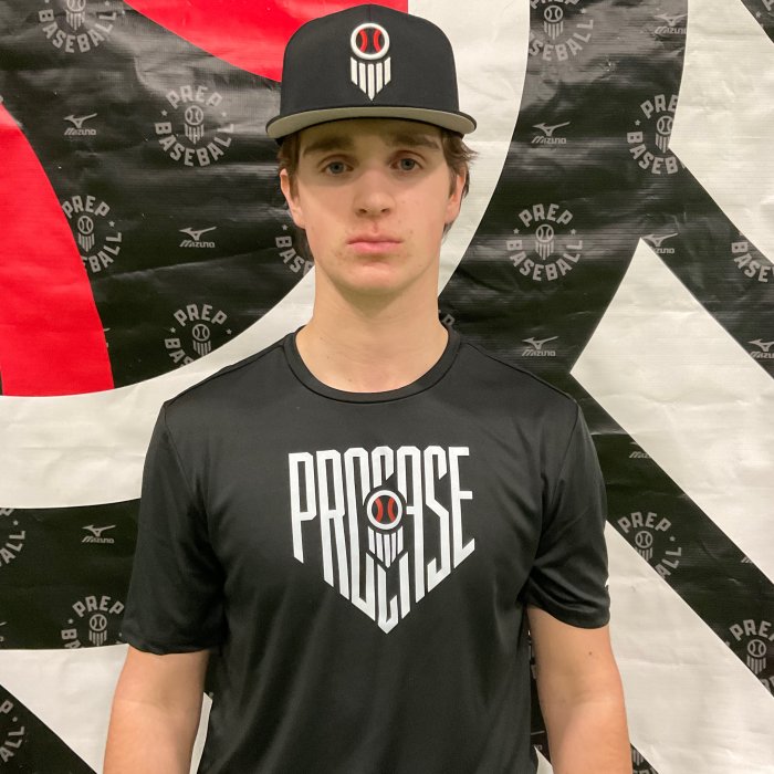 Jack Manzella: SS/RHP, (2026) Fraser, MI. 6-foot-1, 165-pound. (68.1 mph bat speed average). (20.0 mph hand speed average). Started in a balanced stance with a smooth load, then used a controlled small leg kick. Bat speed was above average, displayed a short simple swing plane and level finish. Found multiple barrels with some loud contact. Up the middle gap to gap approach. Athletic above average while in the infield, registered his best throw across the diamond at 83 mph; shows a quick fluid exchange, consistent feet, and twitchy sure hands. Fields the ball out front, movements laterally were quick. Solid capable on the mound, showed consistent good arm speed with a short clean arm action and a high ¾ arm angle. Tall-and-fall type pitcher and uses some effort. Tall balance point with in line shoulders. Lands square with a falling off finish. (Max spin 2207; Avg 2094).