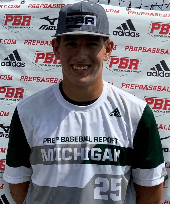 Jacob Morrison: RHP/1B, (2022) Flushing, MI. 6-foot-7, 235-pound. Advanced on the mound, used a loose arm action with a high ¾ arm angle while showing electric arm speed. Tall-and-fall type pitcher who shows high effort. Tall balance point with uphill shoulders. Has a clean finish. Sat with his fastball at 86-88 mph; showed consistent control and tilt with tight movement. Had swing and miss action and command low in the zone on his 12/6 curveball (72-74). He showed fading action and arm side command on his flat changeup (78-80).