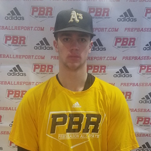 6-foot-3, 195 pound strong framed well developed 2019 prospect. Behind the plate has a solid frame receiving the ball well with a stiff wrist. On the throw down to 2B comes out of the shoot quick throwing with a longer arm. At 3B clears his hips well moving through the ball to throw from a high 3/4 arm angle. From a wide stance with a knee bend rocks back during his load lifting his front leg swinging with a long finish. Has good power with more in the tank.
