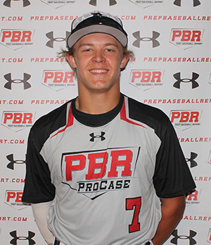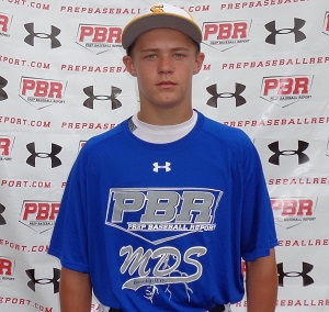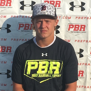 6.21.16 - Currently uncommitted. 6-foot, 170-pound multi-positional athlete, solid build, proportional strength. Primary catcher who can play multiple positions adequately. Athletic feet behind the plate, directional footwork, gets out the chute well, highly accurate thrower, put all throws on bag, pop times ranged between 2.11-2.19, 74 mph out of the crouch. In the infield, shows reliable hands, was clocked at 77 mph. Ran a 6.98 laser-timed 60. Offensively, hits from a balanced setup, simple approach, minimal stride/load, direct path to the baseball, line-drive approach, works gap-to-gap well. Registered 90-mph exit velocity with wood. Was a clear standout in game play. Barreled a 90-mph fastball for a double to left-center field; also singled sharply in first at-bat and squared a ball at the centerfielder. Plays hard and with bounce.