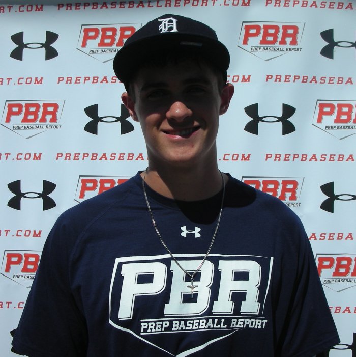 6-foot-2, 210 pound projectable right handed arm. Big body that throws through a high 3/4 slot with loose arm action. Ball shows some nice jump out of hand as he features an 83-86 fastball; also showed some good command. His 72-73 breaking ball displays sharp, late breaking slurvy like movement. Changeup is continuing to develop; sits at 79 mph while being thrown with fastball arm speed.