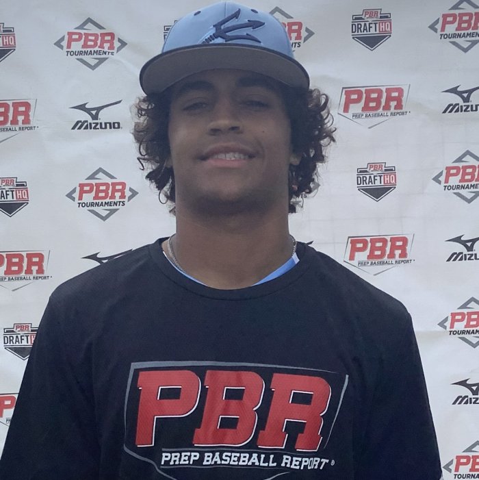Trey Taylor: 2B/RHP, (2023) Richmond, MI. 5-foot-11, 168-pound. Capable during batting practice, Taylor had an exit velocity of 93 mph. Began in a tall open stance with a tight load, then used a short stride. Had a long level swing plane, efficient bat speed and good extension on his finish. Line drive gap to gap approach. Capable in the infield, recorded a position velocity of 77 mph; has consistent in control feet, firm hands, and a packing exchange. Shows deep glove work. Recorded a 60 time of 7.29 at the event. Solid on the mound, using a quick arm action he showed quick arm speed from an over-the-top arm angle. Tall-and-fall type pitcher. Displays even shoulders with an athletic balance point. Lands soft. Curveball (69-72 mph), changeup (70-72 mph). Threw his fastball 79-80 mph and topped out at 81 mph; had command in the zone and slight running action with tight movement. (Max spin 2136; Avg 2012). Had down in the zone command and sweeping action on his 10/4 slider.