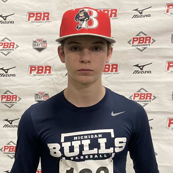 Will Miller: OF/RHP, (2025) Catholic Central, MI. 5-foot-8, 140-pound. Smooth at the plate, Miller recorded an exit velocity of 81 mph. Begins in a narrow stance with a handsy big load, then uses a long stride. Bat speed was average, showed a level swing plane and level finish. Barreled up some balls throughout his round. Line drive approach. In the outfield, his best throw of the day was clocked at 76 mph. On the mound, curveball (62-64 mph), changeup (65-66 mph). Produced a fastball that came in at 73-75 mph. (Max spin 1883; Avg 1688).