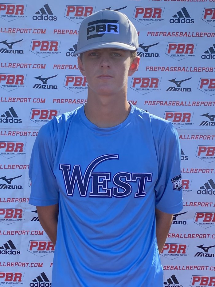 6-foot-2, 175-pound lean athletic build. Solid on the mound, showing quick arm speed he had a short arm action with a high arm angle. Tall-and-fall type pitcher and uses easy effort. Even shoulders and an athletic balance point. Lands square with an athletic finish. Produced a fastball that came in at 74-77 mph with a max of 78 mph; has a sharp fastball that shows consistent arm side command and running action. (Max spin 2003; Avg 1645). Had sweeping late action and very consistent command on his sharp curveball (64-68). (Max spin 1748; Avg 1506).
