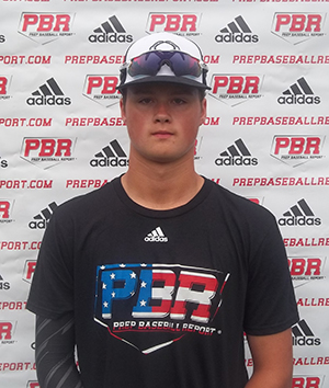 6/19/18- 5-foot-11, 175-pound right-handed hitting 2-way player. #71 ranked player in MN 2019 class. 7.69 runner. Open stance, controlled dive bomb approach, squares baseball consistently, mid/pull approach, line drive and fly ball hitter, 81 mph exit velocity. Flexible behind plate, solid receiver, avg. footwork and release, elevated throws to second, 72 mph arm strength with 2.16-2.32 pop times. On mound; rocker step into athletic balance point, has tempo and rhythm in delivery, short arm action, and lands inline to catcher. Fastball was 80-82 mph with occasional running action. Small break and shape on curveball for strikes.