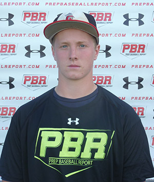 7/6/16- 5-foot-10, 174-pound right-handed hitting catcher. 7.82 runner. Aggressive load, slight front heel turn trigger, generates solid bat speed, Consistent solid contact, works middle of field, and shows ability to drive ball to oppo gap. 81 mph exit velocity. Solid rhythm and actions behind plate, length to exchange, with hitch in arm action. Avg. accuracy to bag with 73 mph arm strength with 2.13-2.31 pop times. Solid receiver with blocking ability consistently deadening balls in front.