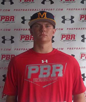 8/6/15- 6-foot, 180-pound left-handed hitting 2-way player. Up tempo delivery. Leaks out early from balance point. Lower arm slot. Hand is underneath at release. Varying cut and run on fastball at 75-77 mph. Slider shows tighter spin and depth than 1/7 breaking ball presently. Shows solid feel for changeup with fade at 68-69 mph. 7.5 runner. Closed stance. Loose hands. Oppo line drive contact/ yanks to pull side. Pop to pull side of field. 88 mph exit velocity off tee. Late glove position. Soft hands. Makes routine plays. Solid around bag. 72 mph arm strength at first base.