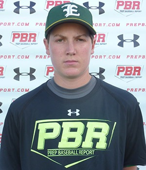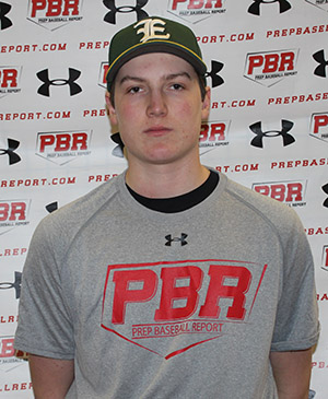 5/3/16- 6-foot-1, 170-pound right-handed hitting 2-way player. Long legs- projectable frame with maturity and strength gains. Slight collapse in delivery, front foot outside knee, with avg. finish/extension to plate. Hides baseball behind body with stab down; clean arm action out front. Fastball has downhill plane with slight cut, commands the strike zone, and was 75-76 mph. Breaking ball was solid with tight rotation, small shape, and depth for strikes. Slows arm action on changeup with fade in zone. 8.43 runner. Body load, longer stride, flat swing plane, short finish after contact, pull approach, 77 mph exit velocity. Solid fielder, decent actions, can handle position, long arm action with accuracy, 74 mph arm strength.