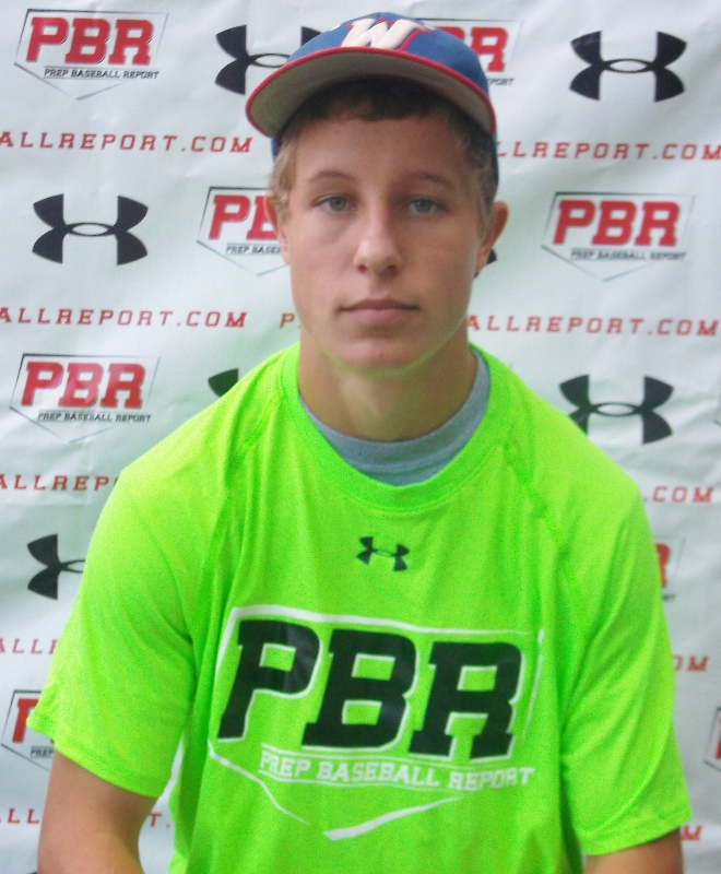 7/22/15 - Gauzy is a 5-foot-11 155-pound switch-hitting outfielder and right-handed pitcher in the 2017 class. In the outfield, Gauzy plays through the catch with quick feet and clean exchange, over-the-top release, 83 mph positional velo, one of the top velos of the event from the outfield. During batting practice, he showed no waisted movements from both sides, short stride, short to contact, level to extension, middle approach from right side, more pull approach from left side, 83 mph right exit velo and 72 mph left exit velo. Runs 6.69 60 and 4.08 home-to-first, fastest times for the event. On the mound, was 77-80 mph, over-the-top release, throws strikes with three pitches, 11-to-5 breaking ball 63-67 mph, 69-71 mph change-up, slight sink.