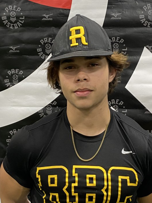 Hit: RHH. Upright, slightly closed stance. Active hands pre-pitch. Leg lift and hand load down. Medium stride, balanced finish. Level swing path with barrel whip through the zone. Shows feel and strength, driving the ball to all fields. 73.6 mph bat speed with 17 G's of rotational acceleration.