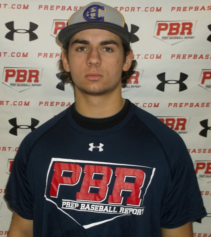 2/15/16 - Paten is a 6-foot-1 200-pound right-handed hitting outfielder and pitcher in Missouri’s 2017 class. He ran a 4.16 home to first and has an exit velo of 91 mph, one of the top RHH exit velos for the event. At the plate, starts in open stance, in-line stride, gap-to-gap approach, some pop to pull side. In the outfield, 80 mph positional velo. On the mound, high three quarters release, hands work over the head during wind up, controlled tempo, slight coil at balance point, fastball at 79-81 mph, some with running action, slurve-type breaking ball at 64-66 mph, 10-to-4 action, change up at 73-76 mph, some with arm side release.