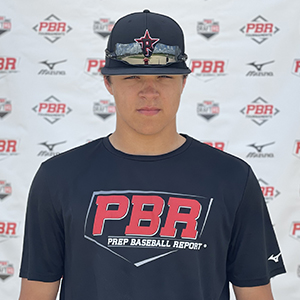 Hit: LHH. Starts with a slightly open stance an athletic posture with hands getting set at shoulder height. Short load into the lower half. Short leg lift stride into an athletic base. Lower half works short and linear through the zone into a slightly bent front leg. Level bat path with hands working rotationally through the zone with a strong top hand finish. Hands work quickly through the zone and shows good overall bat speed. Maintains balance well throughout the swing.