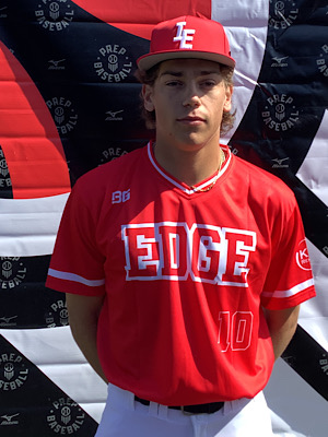 Hits: LHH. Wide, balanced setup. Quiet actions pre-pitch. Small leg kick load and long stride. Utilizes lower half to drive the ball. Level swing plane. Looks to elevate the ball with a gap to gap approach. Consistent solid contact in BP using all fields.