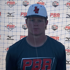 Hit: RHH. Stands tall in the box, slight leg lift trigger, short stride, quick load, stays balanced through contact. Some bat speed, short, level path to the baseball, line drive approach at the plate.