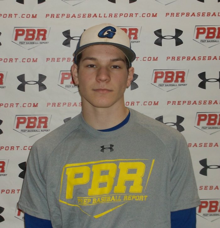 2/15/16 - Becker is a 6-foot- 180-pound right-handed hitting third baseman in Missouri’s 2017 class. He ran a 4.22 home to first and has an exit velo of 91 mph, one of top RHH exit velos for the event. At the plate, slightly open stand, in-line stride, quick and loose hands through hitting zone, level bat path, gap-to-gap approach, solid consistent contact. On the infield, high three quarters release, accurate throws, 81 mph positional velo, athletic actions, quick catch and throw, hands and feet in sync. On the mound, has command of three pitches and a repeatable delivery. He topped at 85 mph with is fastball, one of top RHP velos for the event, sitting 82-84 mph, fastball works the bottom of zone with slight run, breaking ball is a tight 11-to-5 curveball with late action, 69-70 mph, showed a slider at 78 mph, change up at 78-80 mph, throws for a strike, arm side release, hands raise with knee in delivery, in-line stride, high three quarters release.