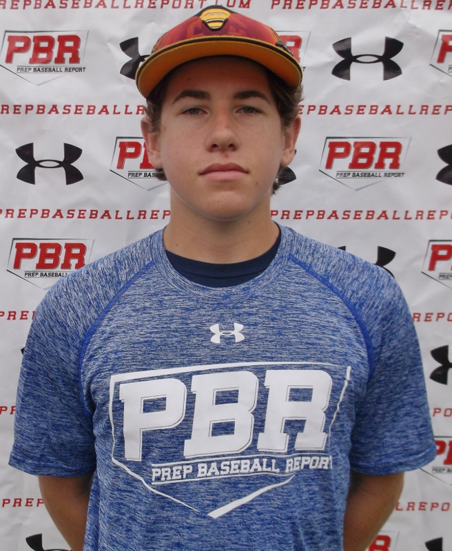 7.7.15 - 6-foot-1, 170-pound, lanky build, right-handed hitter. Offensively, hits from an open stance, smooth load and short stride. Average bat speed, uphill bat path, line-drive approach. Registered an 81 mph exit velocity. Defensively, displayed average hands, ability to play through the ball, long arm action, high ¾ slot, 79 mph from the OF. Also ran a 7.21 60 yard dash.