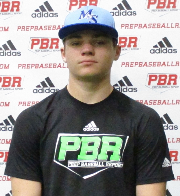 2/24/18 - Perry is a 5-foot-11 175-pound right-handed hitting catcher and outfielder in Missouri’s 2019 class. He ran a 4.70 home to first and has an 89 mph exit velocity. At the plate, balanced stance, slight smooth weight shift to load, calm in line stride, level path, gap to gap contact using mostly the middle of the field. Behind the plate, pop times between 2.13 and 2.27-seconds, 70 mph positional velocity, three quarters arm slot, offset feet in set up, fluid footwork creating momentum to throw, clean exchanges, mostly accurate throws with carry to the bag. In the outfield, 79 mph positional velocity, three quarters arms slot, quick catch and throw, quick to the ball with clean transfers
