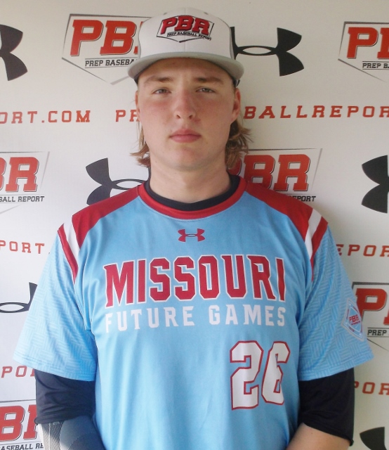 2/15/16 - Hunsicker is a 6-foot-5 225-pound right-handed hitting outfielder, third baseman and right-handed pitcher in Missouri’s 2018 class. He ran a 4.44 home to first and has an exit velo of 87 mph. At the plate, athletic set up, minimal load, short stride, quick bat speed, line drives gap-to-gap, power swing, solid consistent contact. In the outfield, 90 mph positional velo, one of the top velos for the event, over the top release, throws have carry, momentum through catch, quick catch and release. On the infield, loose over the top release, clean exchange with momentum through the catch, 85 mph positional velo, one of top infield velos for the event, accurate throws. On the mound, quick tempo in delivery, repeats will, throws strikes with three pitches, over the top release, quick arm speed, 84-86 mph fastball, works both sides of plate, 12-to-6 shaped breaking ball, late break, down in zone, comes out of hand on fastball plane, change up, at 79-82 mph, bottom of zone, fastball arm speed. Hunsicker is a player to follow in the 2018 class with size and quick arm speed.