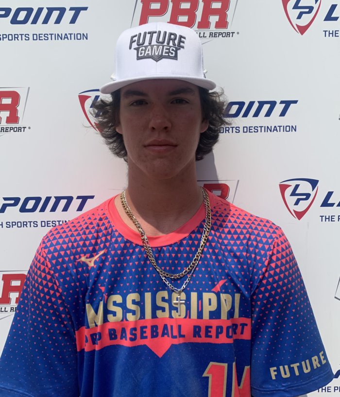 Hit: (RHH) Advanced. Started in a tall stance with a smooth compact load, then used a leg kick controlled stride. Explosive bat speed. Good extension on his finish, upward swing. Gap to gap aggressive approach.