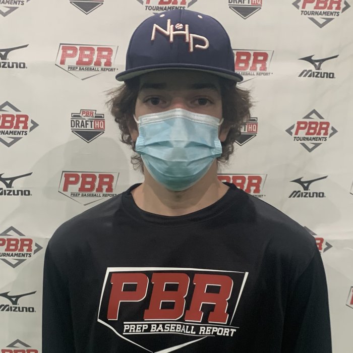 5-foot-10, 140-pound right-handed hitting outfielder. He ran a 7.38 sixty at the event. The approach in the outfield is athletic and online through the baseball. He threw 80 mph from right field to the plate during the defensive portion of the event. The bat has an exit velocity of 83 mph. The setup is even in base and the front foot steps into the swing. The path is slightly uphill through contact with the baseball. The finish displays a 1-handed finish. The frame could add weight and strength helping aid the development of the bat.