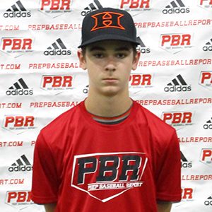 6 foot 1, 130-pound young frame. Hits from the right side using a balanced setup. Weight and hands work back during the load with a short stride. Shoulders get tilted uphill during the load creating an uphill bat path through the zone. Gap to gap approach with average bat speed. Exit velocity recorded at 73 mph and should improve as the body matures. High hips in his setup behind the plate. Stands up during his transfer using a short arm action, throwing from a high ¾ slot. Some feel for the bag on his throws to second base with his positional velocity topping at 61 mph from a crouch position. Pop times ranged from 2.51-2.68. Recorded a 4.61 in the 30-yard dash.