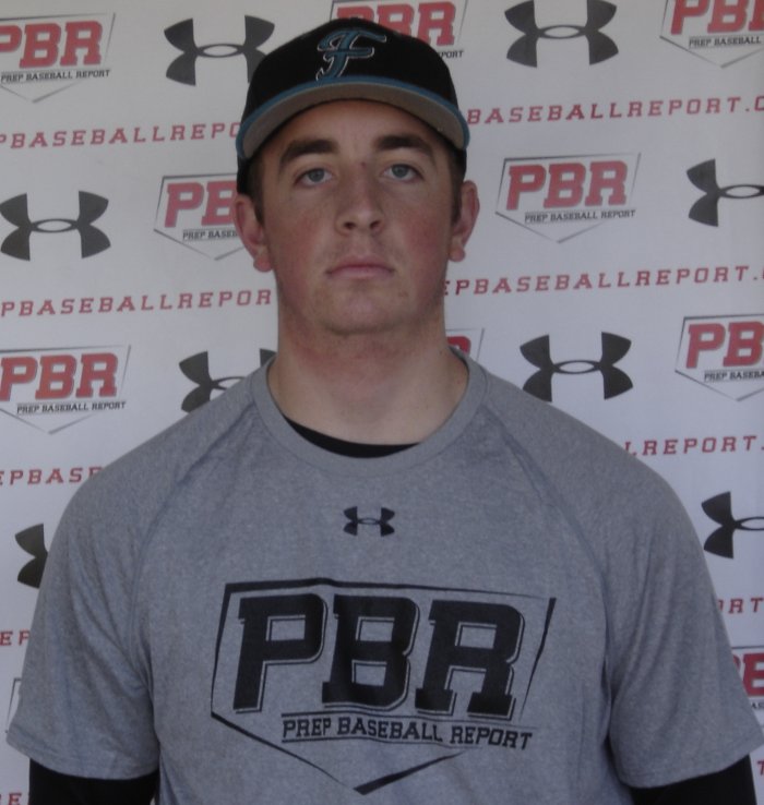 Strong frame at 6-foot, 185 pounds. Uses a ‘C’ load into a vertical bat setup with a leg kick to generate some whip and power. Strength over quickness in the swing right now. Pull conscious approach. Bat waggles through the setup. Lacks some barrel awareness at times. Loose throughout the swing path, and topped at 89mph with his exit velocity. From behind the plate, pop times ranged 2.21-2.24. The exchange can be quickened and the arm lacks some accuracy at times as it “rolls the dice” into the release point. Ran a 8.63 sixty.