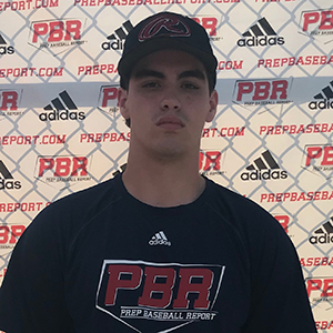 5-11, 185lb catcher with a thick lower half and room to finish his development in the upper body. The LHH works from a balanced stance with a slightly open set up, carrying his hands just off the back shoulder. He loads with a moderate leg kick and medium stride length and slightly turns the barrel at foot strike with minimum hand movement. The bat path is flatter through contact with some lofted tendencies at times. Worked the middle of the field during his BP rounds with low line drives. 84 MPH Exit Velo. Solid catchers build with good actions. Solid avg. arm strength with positional velocity of 78. Hands work and the exchanges are quick producing throws over the bag with 2.06-2.10 pop times. Low exchange with direct arm action just off the ear produced throws with moderate carry. Controlled and confident approach behind the plate, handled pitchers well during bullpen session. Block and recovery skills show a good athletic base and quick feet. Ran 7.40 sixty.