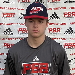 Hit: R. Balanced, even base, hands above back shoulder. Leg kick against his back hip, short stride, quiet barrel. Aggressive swing, hands are quick, has lift to his barrel path, lined some balls to the left center gap.