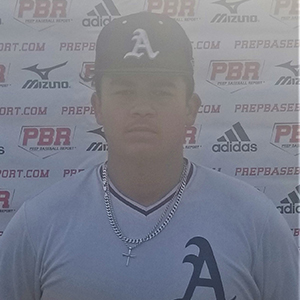 6 foot, 215-pound build. Slightly open setup from the right side with his hands starting below his back shoulder. Hands work down in his load while using a toe tap with a short stride. Looks to lift the ball with quick hands working mostly to his pull side. Some strength in the swing with better than average bat speed. Exit velocity recorded at 91 mph. Average hands on the infield with clean transfers and feel for different arm angles. Some accuracy across the diamond with his arm topping at 75 mph. Recorded an 8.75 in the 60.