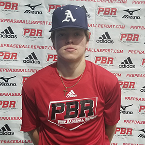 Strong build at 6 foot, 185-pounds. Hits from the right side with a wide base, sitting into his legs. Short stride with his hands cocking creating bat angle above his head during the load. Quick hands with feel for his barrel. Works gap to gap with above average bat speed. Exit velocity recorded at 91 mph. Plays through balls in the outfield with average hands. Clean transfers with a long arm action, throwing form an over the top slot. Accurate arm that topped at 80 mph. Recorded a 7.16 in the 60.